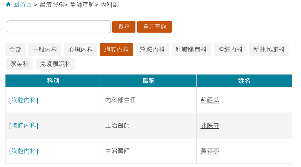 - 在醫師姓名右方則有醫師不看診時間的提醒。