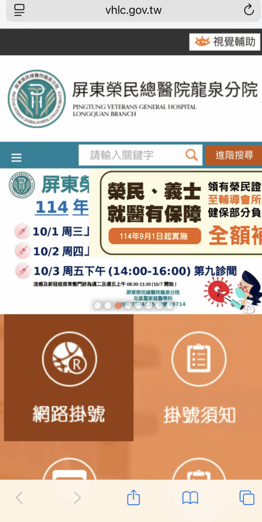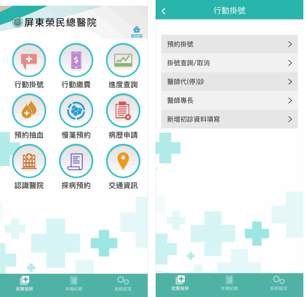 - 下載屏東榮總行動APP,可掛屏東總院的門診,但龍泉分院目前無法直接在app上掛號,仍要切到網頁版
